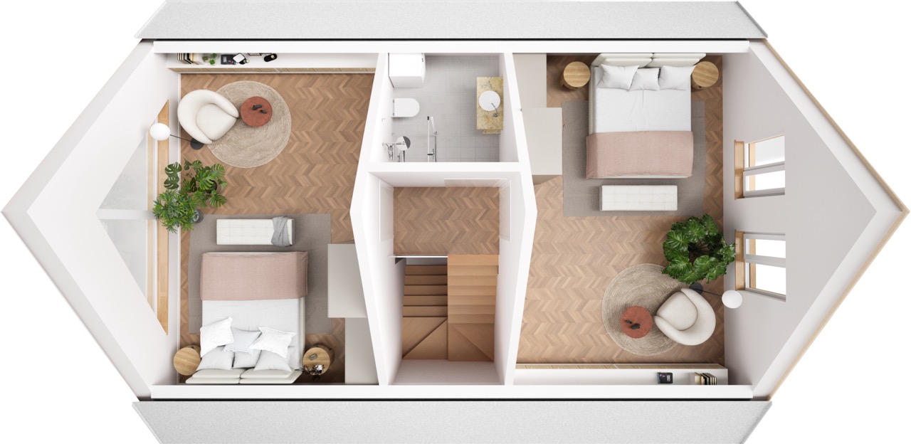 Gotowe moduły zostają przetransportowane i zmontowane bezpośrednio na działce. Cały proces trwa zaledwie kilka dni, minimalizując uciążliwości dla inwestora. Po zakończeniu montażu dom ma już docelowy kształt i bryłę.