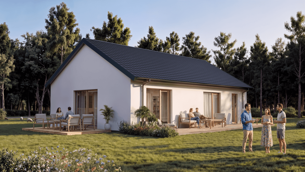 Gotowe moduły zostają przetransportowane i zmontowane bezpośrednio na działce. Cały proces trwa zaledwie kilka dni, minimalizując uciążliwości dla inwestora. Po zakończeniu montażu dom ma już docelowy kształt i bryłę.