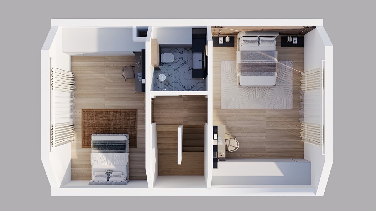 Gotowe moduły zostają przetransportowane i zmontowane bezpośrednio na działce. Cały proces trwa zaledwie kilka dni, minimalizując uciążliwości dla inwestora. Po zakończeniu montażu dom ma już docelowy kształt i bryłę.